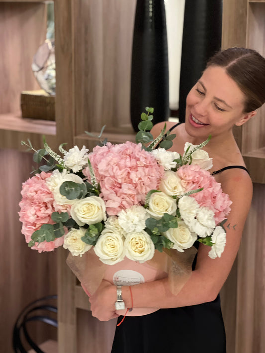 BOX OF RED ROSES & ORCHIDS