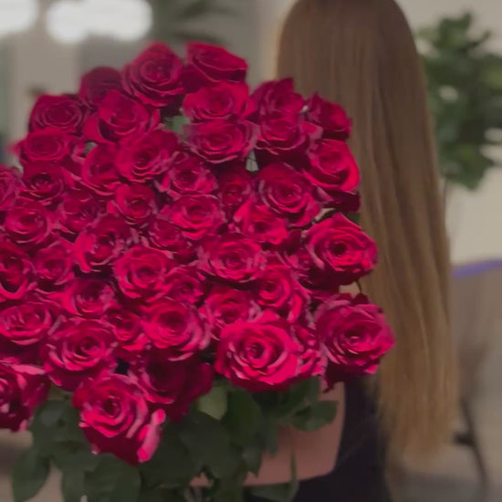 Super long stem roses . The perfect choice for special occasions — luxurious one-meter-long red roses available in arrangements of 51, 71, or 101 stems. This elegant bouquet will highlight your feelings and make an unforgettable gift for a birthday or a marriage proposal.