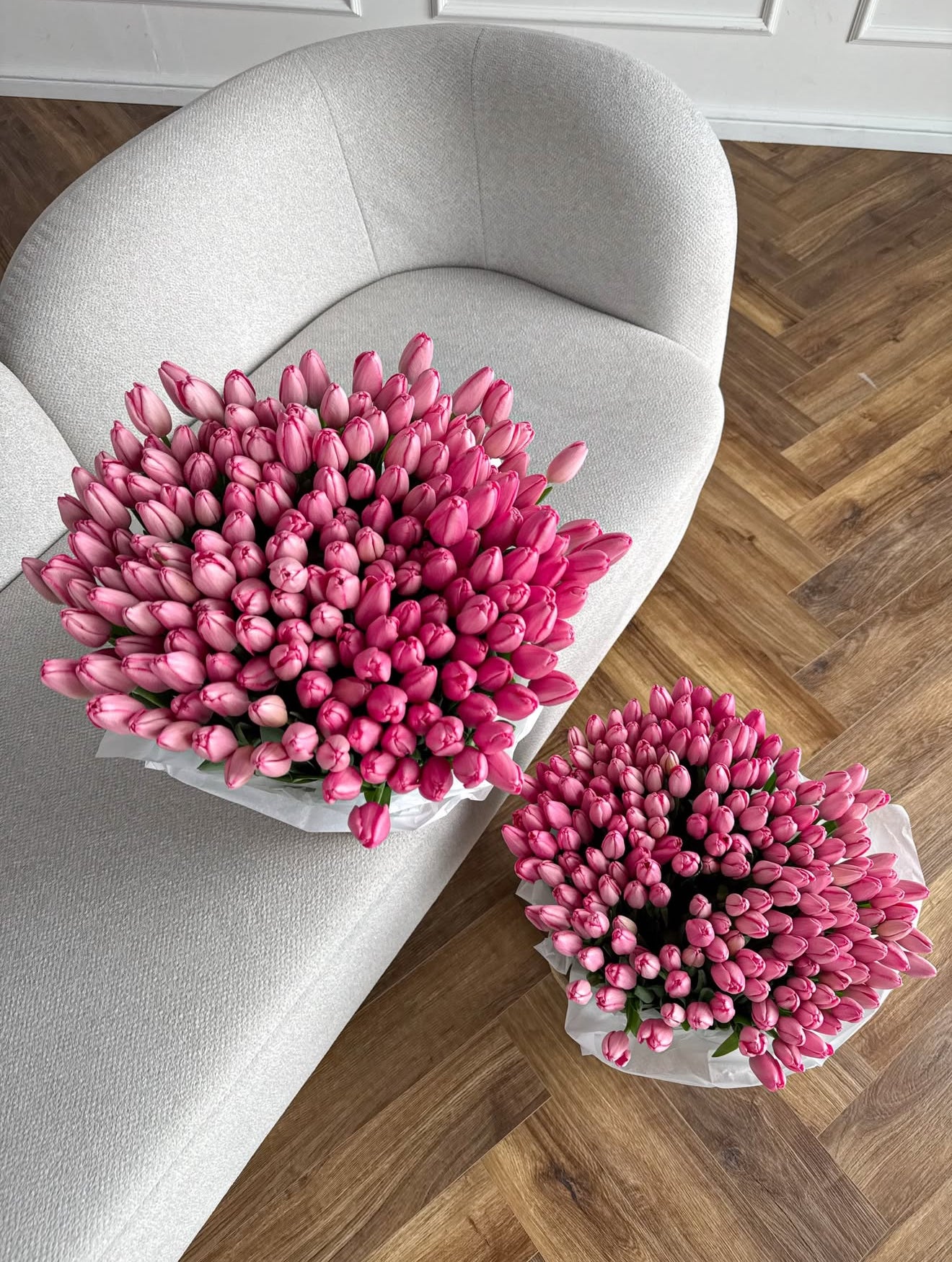 A luxurious basket of 100 pink tulips is the perfect statement of elegance, love, and appreciation. This large pink tulip arrangement is designed to create a true WOW effect and fill any space with softness, beauty, and fresh spring energy. Each tulip is carefully selected for its premium quality, long stems, and vibrant pink color, creating a full, abundant flower basket that feels both romantic and sophisticated. This 100 tulips basket is ideal for celebrating Women’s Day, Mother’s Day, birthdays, anniversaries, Valentine’s Day, or surprising someone special just because. It is also perfect for home decor, luxury interior decoration, romantic surprises, and upscale floral gifts.